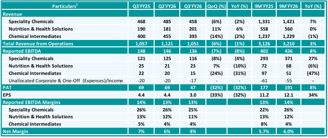 "Over the past year, we have made significant progress across all pillars of our strategy, laying the groundwork for sustained long-term growth while ensuring stability in the near term, even amid current challenging global market conditions. These efforts are already delivering results, as reflected in our stable quarterly performance in our Specialty and Nutrition portfolio, overall margins, along with a substantially expanded pipeline of more than 100 new opportunities, including 16 wins this year. In Q3 FY26, we further accelerated our Pinnacle journey, achieving important milestones that reinforce our momentum and strengthen our trajectory toward enduring value creation."