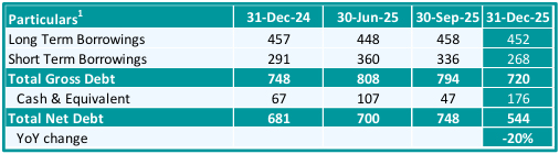 The working capital reduced to 17.4% in Q3'FY26 from 20.1% during Q2'FY26.